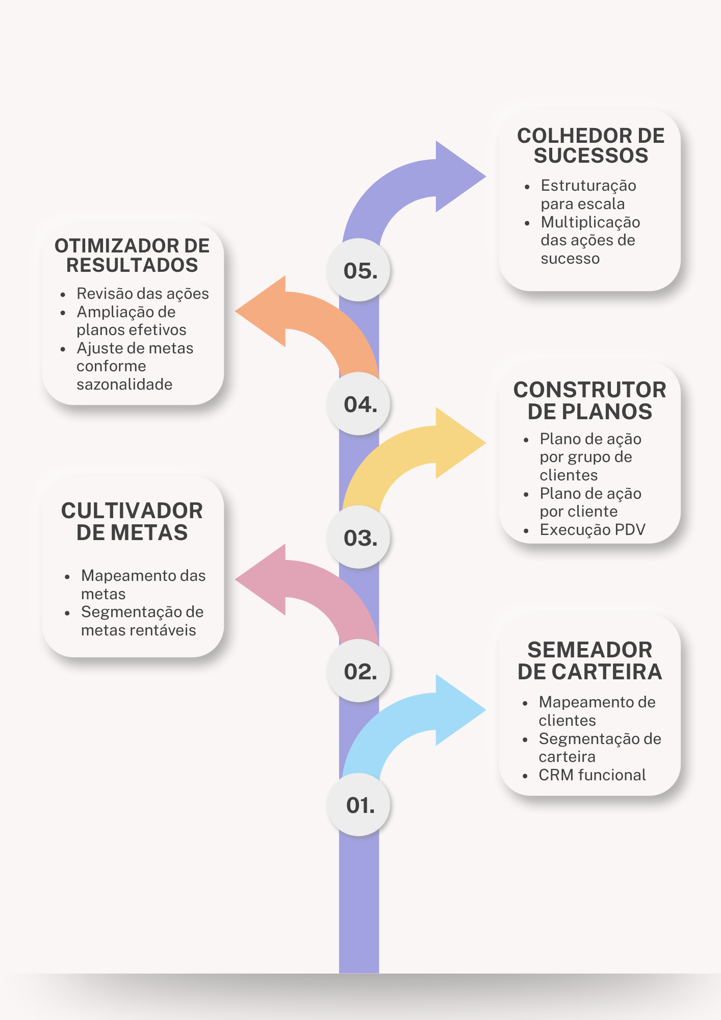 - Estratégias de carteira fidelizada que eliminam o estresse de quedas bruscas de pedidos, mantendo um fluxo contínuo e seguro de vendas.